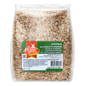 Хлопья НТВ из смеси 4 х злаков ТМ"Наше утро" 400гр Агромарка ПК ООО(производитель) - Купить в магазине "Светофор" город Скопин, Пушкина ул. 63
